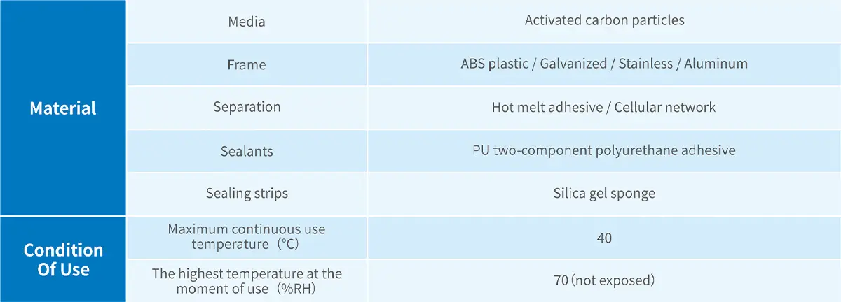 Con su estructura robusta y duradera, estos filtros son ideales para entornos exigentes donde el control de calidad del aire es crucial. Los filtros V-bank ofrecen una gran superficie de contacto, lo que proporciona capacidades excepcionales de adsorción manteniendo una baja caída de presión, asegurando un flujo de aire óptimo sin comprometer el rendimiento de filtración. Ya sea en entornos industriales, comerciales o residenciales, estos filtros ofrecen soluciones confiables y duraderas para mejorar la calidad del aire interior mediante la eliminación eficiente de olores, gases y COVs no deseados.